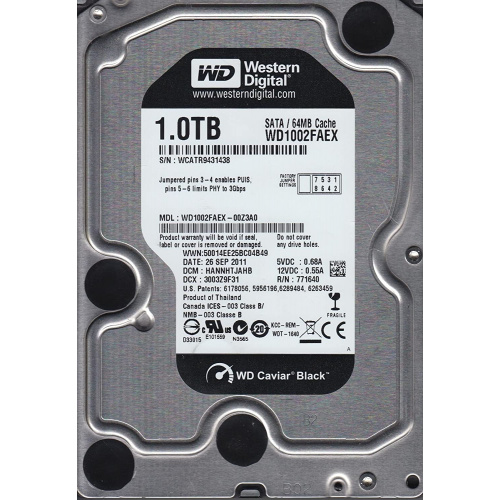 WD 1TB SATA3 BLACK 7200rpm 64M (# WD1002FAEX)